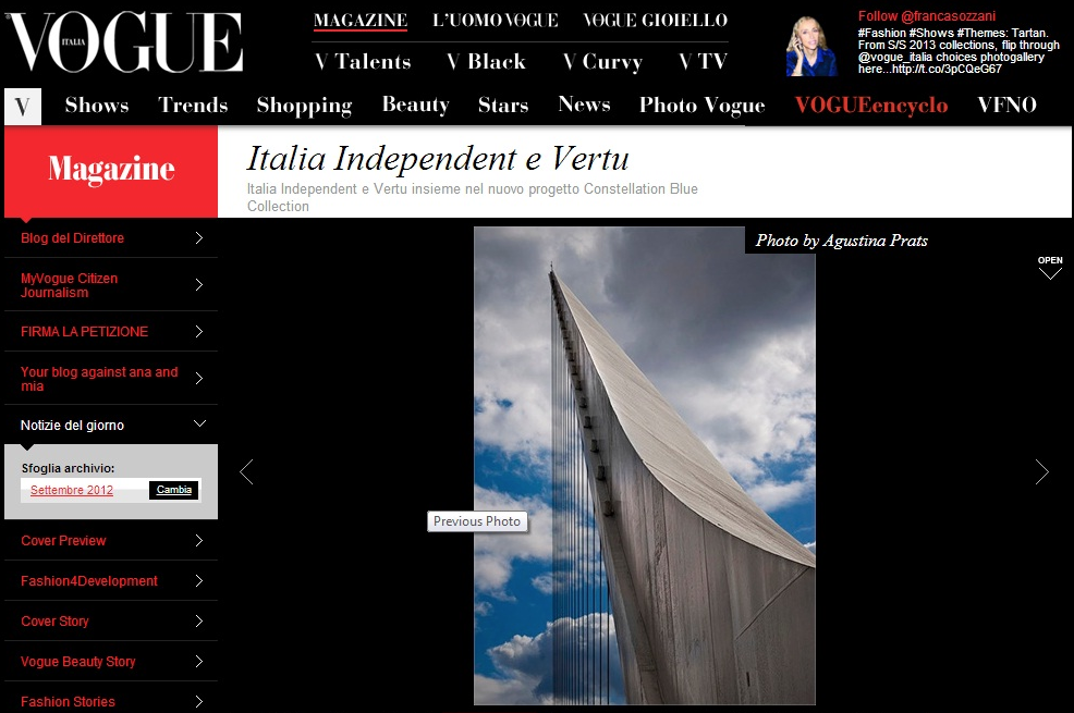 "Blue@Vogue" by Italia Independent and Vertu; Vogue, Milan 2012; "Naturama" BCBA
